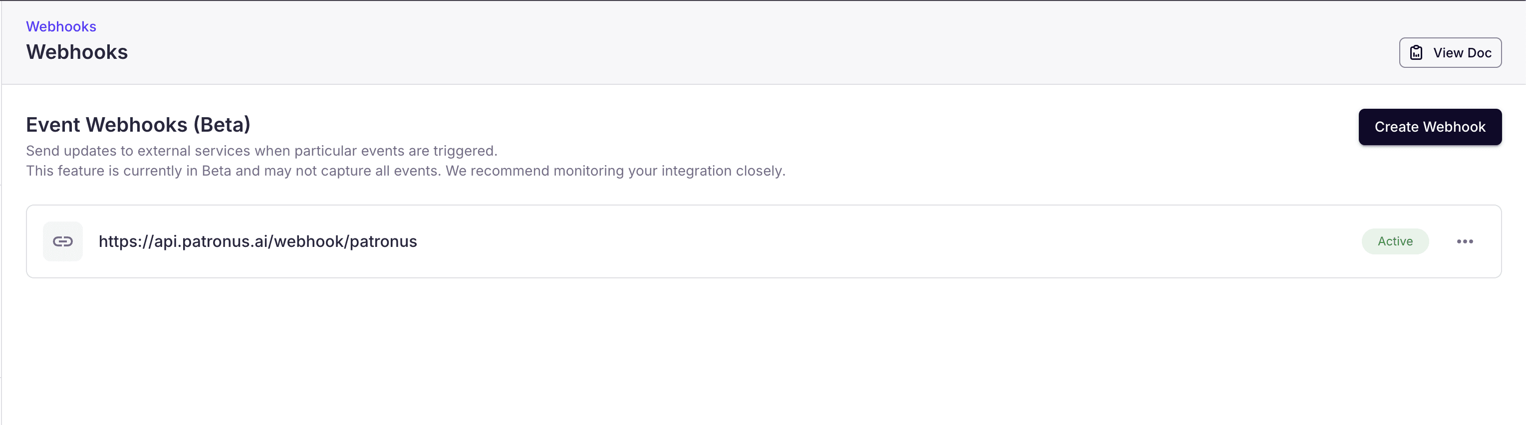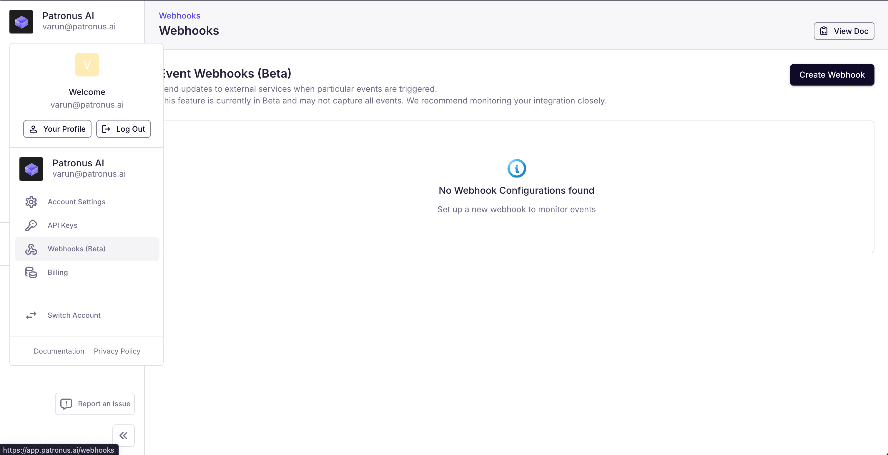 When particular events on the Patronus platform occur, like evaluation failures, you can notify external services through Webhooks.